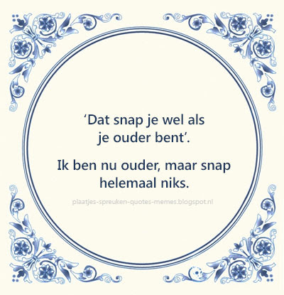 Dat snap je wel als je ouder bent. Ik ben nu ouder, maar ik snap helemaal niks.